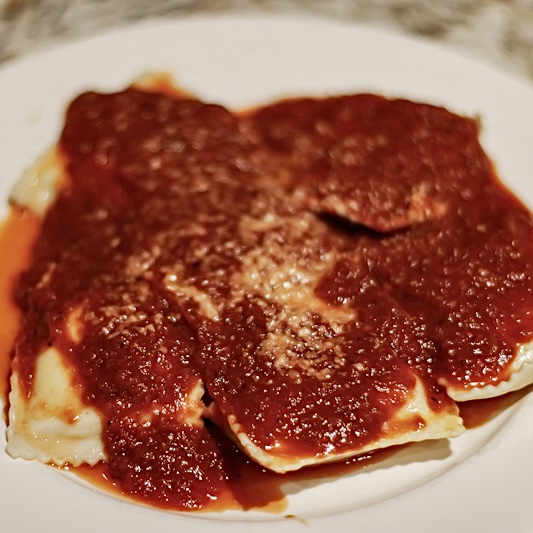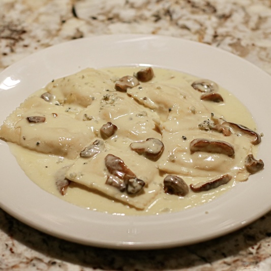 Cheese ravioli with a wild mushroom gorganzola cream sauce