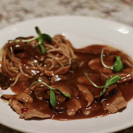 Veal scallopini with wild mushroom in a Marsala wine sauce