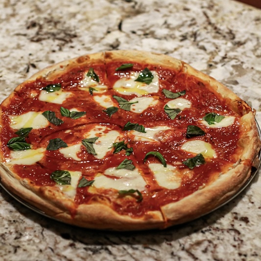 Our roasted pizza sauce with home made fresh mozzarella, extra virgin olive oil, and fresh basil