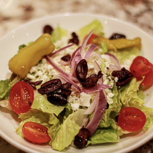 Romaine lettuce, Gaeta olives, red onions, pepperoncini, cherry tomatoes, and feta cheese with our vinaigrette dressing