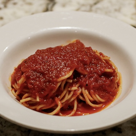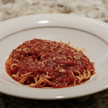 Penne Pasta in a lite marinara sauce with Parmeggiano cheese