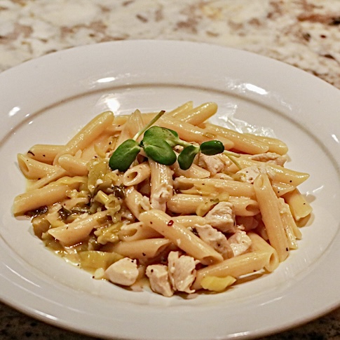 Chicken sauteed with Italian zesty pepperoncini , scallions, in a garlic white wine sauce served with penne pasta