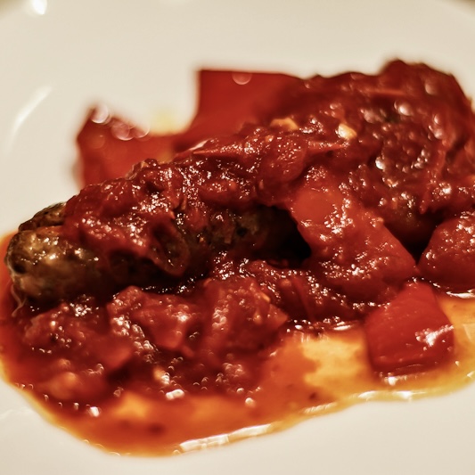 Homemade Italian sausage sauteed with onions and roasted red peppers in our cherry tomato marinara sauce