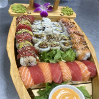 Inside: avocado, crab stick, cucumber Outside: salmon, tuna, snapper topped with tobiko *** AVAILABLE UNTIL 2:30PM MONDAY-FRIDAY *** * Holidays not included*