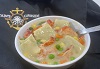 Minced chicken breast, onions, celery & carrots, with farfalle pasta in a perfectly spiced broth.