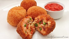 What a fun treat! Creamy, cheesey mac 'n' cheese battered and flavored to perfection with a nice smoky Gouda cheese taste.
