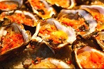 (6 pk) (Gluten Free) A half dozen oysters on the 1/2 shell topped with all the traditional casino flavors- butter, bacon, and colored pepper.
