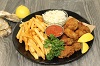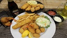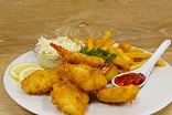 Comes with 2 pieces of battered cod, 2 breaded shrimp, 3 breaded scallops, dipping sauce, our homemade coleslaw and the Captain’s Crunchy fries.