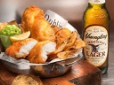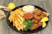 Our breaded oysters served up with the Captain’s crunchy fries, our homemade cole slaw and cocktail sauce.