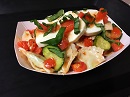 Positively Pasta's pesto agnolotti stuffed pasta tossed with fresh cucumber and flavorful marinated tomatoes. A real treat!