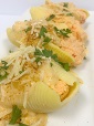 Oh boy – These are a real treat! Jumbo Lump Crab and Ricotta cheese filling stuffed in jumbo shells. The shells are topped in a traditional Parmesan style.