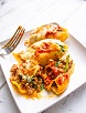 No seafood or meat in this treat! Layers of pasta, fresh cut vegetables, mascarpone cream sauce held together with fresh shred Mozzarella, Parmesan and Ricotta cheese. A true vegetarian delight!