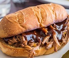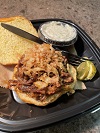The Captain's tender, slow cooked short rib is served up hot on a soft Brioche bun with onion crunchies, sweet and spicy pickles and a side homemade cole slaw.