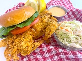 Our crispy, jumbo breaded shrimp served on a toasted New England style bun with lettuce, tomato and our creamy Sriracha sauce. Don't forget our homemade coleslaw on the side.