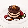 The perfect serving of this American classic. Rich red velvet cake is layered with sweet cream cheese filling and finished with a dark chocolate garnish.