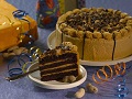 A dynamite combination of fudge, velvety smooth peanut butter mousse and chocolate cake is topped with brownie chunks and peanut butter chips.