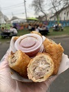 (9 pk) These homemade pierogies are the “Sleeper” of the bunch. Absolutely a “Must Try”. They are packed full of flavor with the smokiness of the Salmon, shallots and Gouda cheese folded into the traditional mashed potato base. Sauté with some butter and onions. Mmmm.