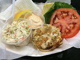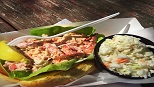 Crab meat lightly tossed in a perfectly seasoned dressing, nestled in a bed of lettuce on a warm grilled New England style bun, served with our homemade coleslaw.