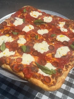 The B.K. - Upside - down Brooklyn style, charred cup pepperoni, straciatella cheese, fresh basil, lite drizzle of EVOO