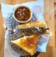 Parmesan crusted Texas toast, provolone cheese, Italian beef and garlic mayo, with your choice of side.