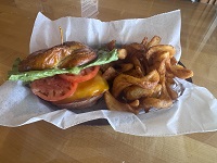 1/2 pound burger cooked to your liking, choice of cheese, fried onions, served on grilled rye, and your choice of side