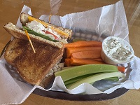 Grilled turkey, bacon, provolone cheese, red onion and cranberry mayo, served on grilled wheat bread, with your choice of side