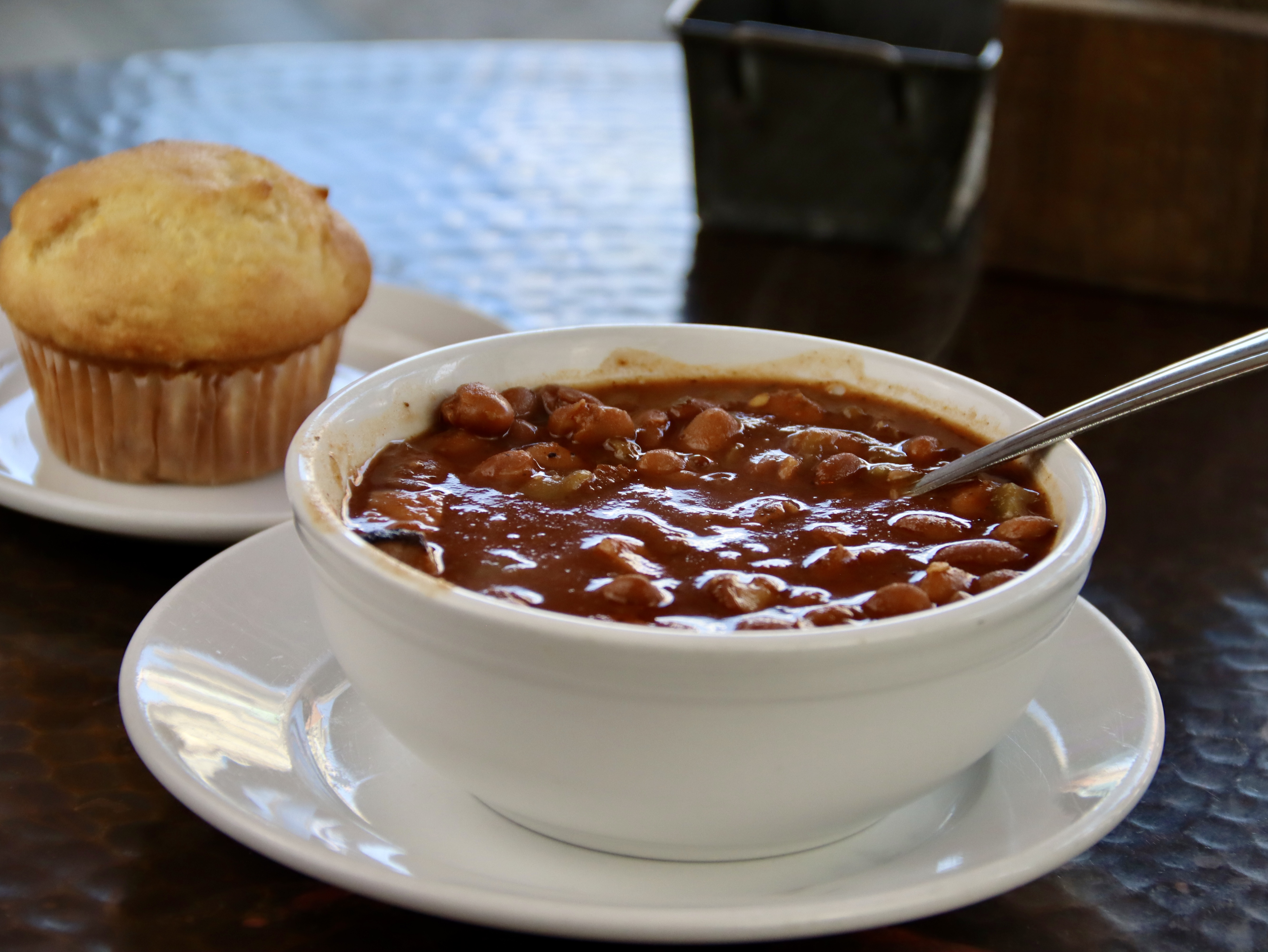 Pinto beans slow simmered with ham, onions, mild green chilies, and our secret seasoning blend.